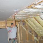 For longer measurements, I use a wood strip cut to exactly 144 inches (or the length of the longest full sheet of drywall that I happen to be working with). I can butt one end of the measuring stick against the wall framing and mark the other end on the last sheet of installed drywall, then measure from the mark back to the center of the nearest joist. This gives me the length that I need to cut off a full sheet of drywall so that the butt joint falls on the joist – but to allow a little play along the wall, I cut the sheet 1/4 inch short of the mark. I also use the wooden measuring stick as a story pole, to record the location of vents, electric boxes, and other openings in the ceiling and then lay them out on the drywall.