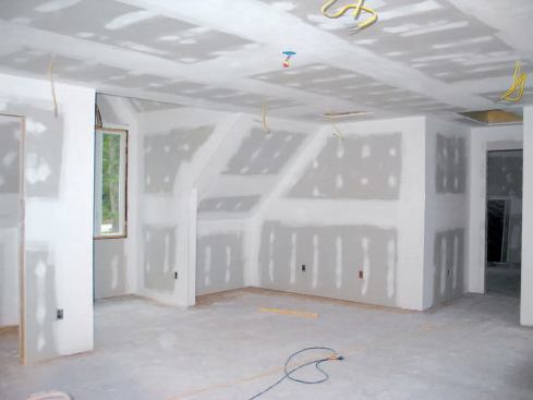 In my area, the price for installed drywall varies tremendously, depending on the size of the job, the degree of difficulty, and the standard of workmanship. The rock-bottom labor rate for production work in new houses is about $22 per sheet for hanging and finishing, while very high-end work on a difficult job can fetch as much as $52 per sheet. At $34 per sheet, my price for this job was right in the middle but probably didn’t adequately account for all the openings (more than 150) I had to measure and cut for outlets, vents, wires, and the like. Next time, I’ll pay more attention to the style of the electric boxes when I make my bid; these were designed for maximum volume and stepped out behind the sheetrock, so I couldn’t cut them out with a router, which definitely slowed me down.