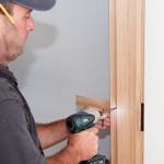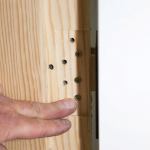 A hinge that’s mortised a little too deeply (or not deeply enough) will be slightly out of vertical alignment with the other hinges and affect both the reveal and a smooth swing. Shimming behind the leaf with thin cardboard works, but if the painters come along and pull the hinges, the shims tend to vanish along with your careful adjustments. This is where those small shipping screws I save come in. With the door open and wedged for stability, I pull the hinge screws, fold the hinge back, and install a few shipping screws in the mortise, adjusting the heads in or out until the leaf lies flush in the jamb. Maybe it should go without saying, but I predrill for every screw I install.