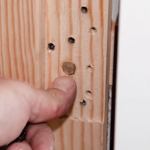 These days, hinge screws are generally the “self-drilling” type, and they’re jammed in at the plant at top speed. Thus, some of them are guaranteed to end up off-center with the head protruding slightly from the hinge. This can interfere with smooth hinge operation. It’s simple to fix: You redrill a truly centered hole for the screw. But first the old hole has to be filled. I don’t mess around with golf tees or whittled pegs and wood glue. I fold back the hinge leaf and drill a 1/2-inch-diameter hole with a countersinking bit. Then I cut a matching plug and glue it in with 2P-10 (888/443-3748, fastcap.com), a two-part glue that bonds almost instantly. I chisel the plug flush with the surface, re-install the hinge, and then drill a new hole for the screw using a self-centering vix bit. It’s fast and foolproof.
