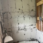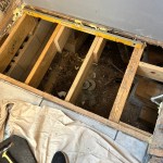We started by demoing out the entire shower area down to the framework. Here’s where it got involved: Installation of a cast shower floor requires the walls to be absolutely plumb and square. On a 100-year-old house, that can be a challenge. We removed a lot of existing framing and squared up the corners of the shower area by moving and adding new wall plates. From there, we plumbed up the walls with new framing material. Next came the subfloor. The existing floor had a sag of about 5/8 inch in the center. We could have added a self-leveler to the floor but we preferred to remove the existing subfloor and sister new floor joists to the existing ones to level the floor out completely. We then installed Georgia Pacific Denshield 4×8 boards, glued and fastened to the framing using 1 1/2‑inch stainless steel screws. Denshield is a waterproof substrate for tile, but the seams still need waterproof mesh and thinset.