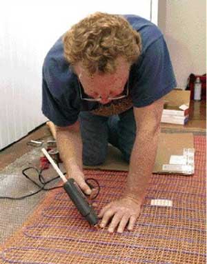 This electric-resistance mat can warm a tile floor without greatly raising the floor height