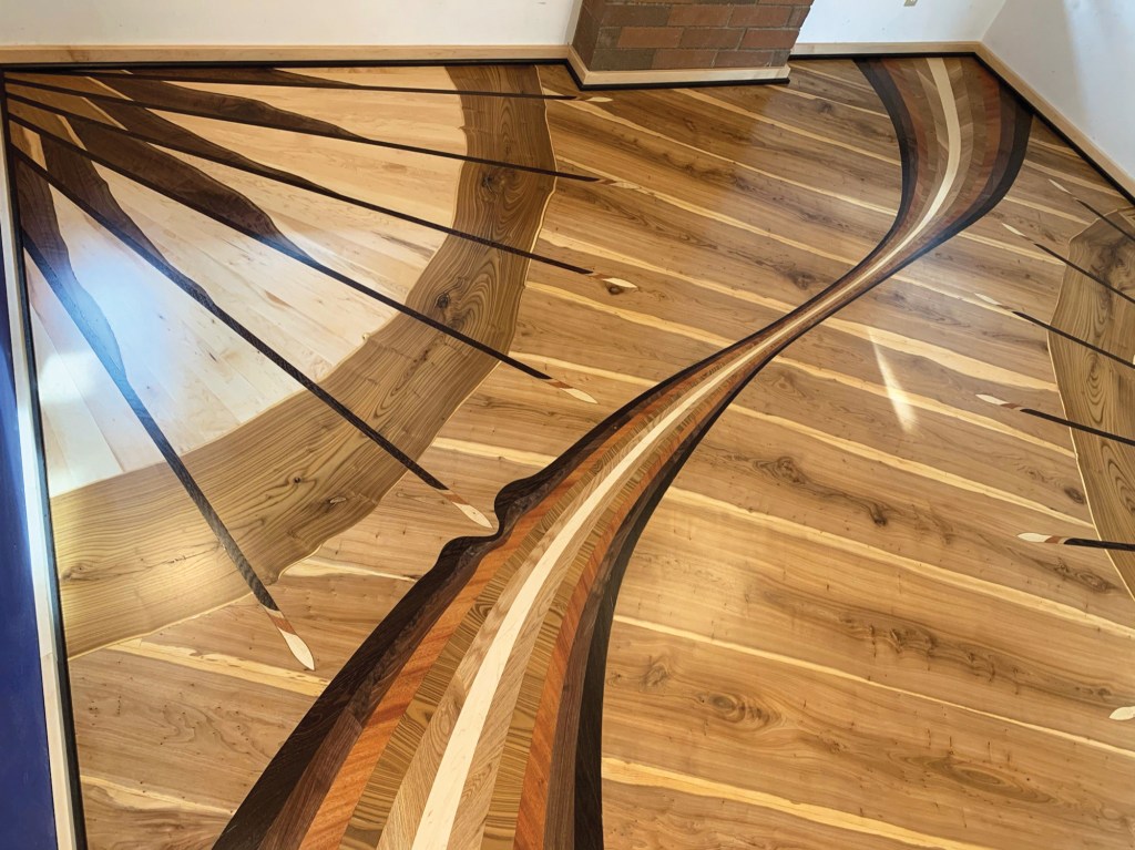 I don’t install many floors with live-edge inlays and other custom features like the ones described in this article (the market for these unique wood floors is relatively small and select), but I would if I could. I like the process of working with clients to come up with a design and the technical challenge of executing it using various wood species that I’ve sourced myself.