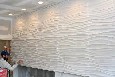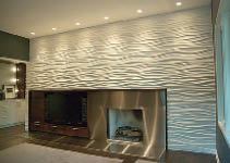 As part of a recent whole-house remodel, we built a media room featuring a stainless steel fireplace surround set in an accent wall covered with sculptural panels. Manufactured by Modular Arts (206/788-4210, modulararts.com), these interlocking 32-inch-by-32-inch panels have a gypsum core and a fiber-reinforced hard-shell surface. They come in about two dozen different designs; we used a pattern called Dune.