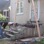 When we began pulling the steps apart, it became clear that the crumbling surfaces had contributed to the deterioration of the overall structure. There’s a saying that they don’t build things like they used to, and if these steps are any indication, it’s probably a good thing: The stairs had been backfilled with broken block, wood construction debris, and dirt, all of which had settled over time as the deterioration worsened and water poured in and compressed everything even more. The porch landing, originally limestone set on a 2-inch-thick concrete pad, had 6 inches of space beneath it. We were amazed — not by the fact that there was so much damage, but that the stairs had lasted close to 60 years.