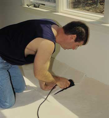 It’s a good idea to preview existing conditions with the installer and make a record of any damage to paint, walls, and other finishes before carpet installation begins. The floor in any rooms receiving new carpeting should be vacuum-clean. If you’re replacing old carpeting, vacuum it first, before removal, to reduce the release of airborne contaminants (see “Carpet Emissions,” below). While other flooring types might require removal or a layer of new underlayment, cushion and carpet can usually be run directly over existing wood, ceramic or composition tile, concrete slabs, or a new plywood subfloor. The condition of the subfloor is important, however; an uneven surface will show right through the carpet. Remove loose materials and fill surface defects such as chipped tiles or gapped flooring with a leveling compound or other secure replacement material.