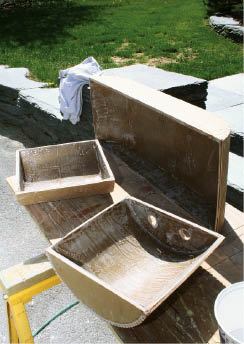 First I sized each rough form so that the mosaic tile layout would fit without any cutting (2). I made the forms from 1/2-inch MDO, kerfing the backs so that they’d bend smoothly around the top and bottom pieces (3). Waterproof wood glue and narrow-crown staples hold the assemblies together.