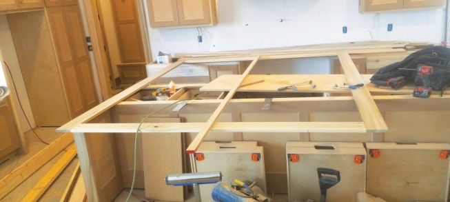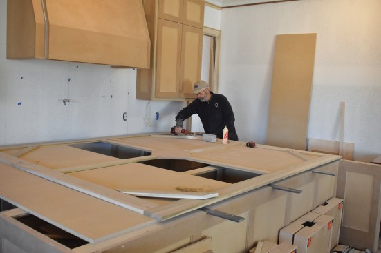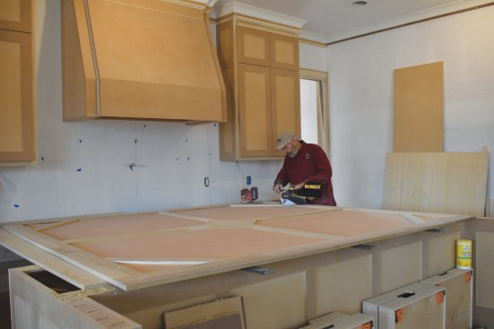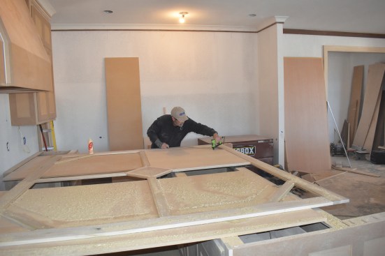 When all the panels were in place, I asked a couple of other carpenters on the job to carefully help me flip the assembly so I could sand the face and carefully cut out the hole for the light box.