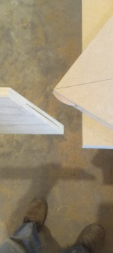 To fit the acute angles on the small, triangular corner panels, he used a belt sander to round over the corners.