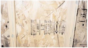 If you look carefully at the sheet of OSB in question, you’ll see that most of the fibers are oriented parallel with the length of the sheet, making that the strongest axis in bending.