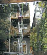 Also from the commercial side, we used a floating ceiling plane, suspended on wires with kickers to keep it from moving. Inexpensive brackets and standard wire shelving make dishes easy for the cook to access. The wall cabinets are a KI office panel system (ki.com) with built-in lighting; they’re inexpensive compared with conventional kitchen cabinets and have an easy-access opening – though a friend says they remind him of the overhead bins on an airliner. The drawers beneath the long counter are actually Herman Miller Meridian (hermanmiller.com) commercial file cabinets. We placed a plant box in the window sill to block the view of the roof next door while still letting in the daylight.