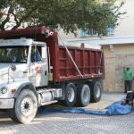 Waste management is a big part of the job. We prefer dump trucks over dumpsters. For one thing, truck tires are less likely to crack driveway pavement the way a big dumpster can. Also, you can control when the trucks come and go, instead of having to work around the dumpster company’s schedule.