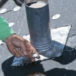 The kettle has to be constantly monitored, both for safety and to make sure that the asphalt stays at the right temperature, so we assign workers to this task. Fire code requires that we keep two extinguishers handy.