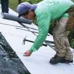 Once the dry-in is complete and all skylights, vents, and flashings have been installed and sealed, we can go home for the day. The next day we do the hot mop.