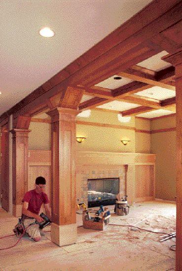 Craftsman-style wood paneling is one of the easiest types to install because the stiles and rails have no sticking profile: They’re cut square, which means you don’t need cope-and-stick router or shaper bits. And with square-cut stiles and rails, there’s no need for fancy panel molding either. The trick is to preassemble all the stile-and-rail sections and install the panels before fastening anything to the walls or columns.