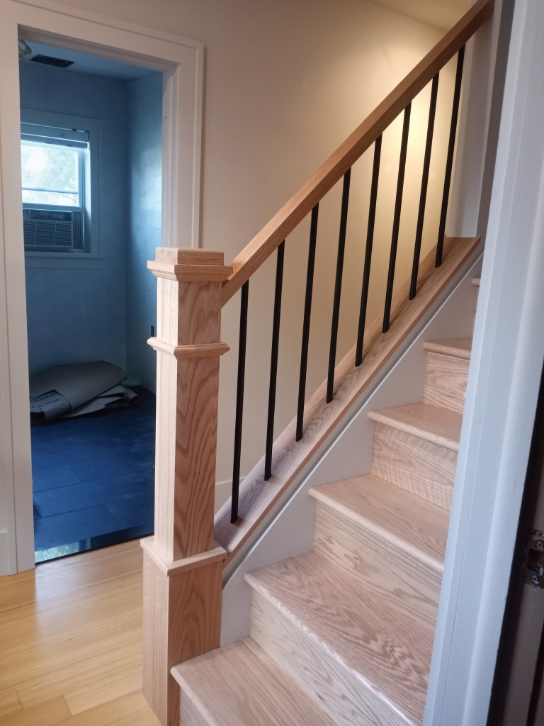 With this stair design, it made sense to install newel posts at this time. Lastly, I installed the lowermost tread.