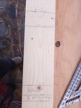 For stairs, I always create a story pole with each subtread, tread, riser, and the finished floors marked on it. A fairly straight 10-foot 2×4 does the trick. I place this story pole in the stairwell to check my math, or I simply measure from the finished floor to finished-floor marks on the story pole to make sure the layout matches the overall rise measurement I took of the space.