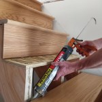 Starting with the top tread assembly (not the landing tread), I glued the tread-riser assemblies down with PL (See slideshow left). I face-screwed each tread through the back of the riser, predrilling first to prevent blowout or snapped screws.