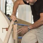 After recording the length of the balusters, I use the baluster projector and a baluster cutting board to quickly lay out the cuts. It’s especially useful when I’m working with decorative metal balusters, since baskets, knuckles, scrolls, and other details can make the baluster tricky to measure with a tape. A sixteenth of an inch can make a tremendous difference as to whether a baluster fits or not.