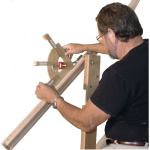 To set up the bench rail, I clamp it to the workbench so that the lower end is unobstructed. Then, using my easing protractor (which I’ve already set to cut the easing), I raise or lower the hinged arm until the protractor reads level and tighten the wingnut (B). Now the bench rail is the same angle as the rake rail; it doesn’t matter whether my bench is level.