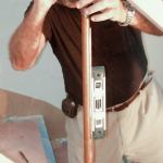 A baluster projector is a great tool for accurately measuring baluster lengths and laying out their locations on the handrail (A). I also use it as a point-to-point plumb stick, and even support handrails with it on occasion. I made mine from about $10 worth of copper pipe and assorted fittings (B). The top portion is a 19-inch length of 1/2-inch-diameter hard copper pipe; it slides inside either a 15-inch or 24-inch length of 3/4-inch pipe. (I need the extra length for taller railings; the shorter projector is good for curbed stairs.) I solder a 3/4-inch to 1/2-inch reducer to the top end of the larger pipe, first removing the shoulder on the inside of the fitting so the smaller pipe will pass smoothly but snugly through it.