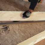 I installed the treads with PL-Premium, locking the back edge in under the elevated base of the finish risers. I face-nailed at the front of the treads and filled the heads with wood dough. The treads and upper floor are finished with three coats of a clear water­borne urethane.