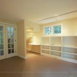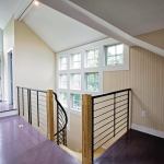 On the stair’s open side, I supported the treads on 2×3 studs, following the curves of the two winders. The back side of the curved wall section is finished with wire lath and plaster. I finished the front side of this wall with vertical 1×3 T&G fir, which knuckled around the curves as if custom-made for the job. In the area under the stairs, we added lighting and a built-in desktop to create a small “found space” office.