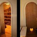 The homeowners requested a plaster-look interior finish for a pair of small, arch-top windows in their bath remodel.