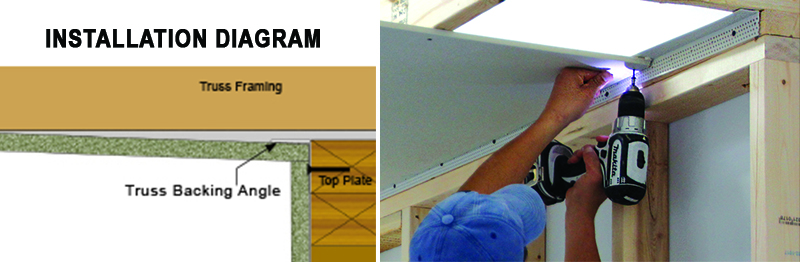 The backing angle is made from vinyl, which is strong enough to hold the drywall edge in place along the top edge of the wall. It can easily be fastened anywhere along the edge, as long as the fasteners donβt go through the angle and into the truss. The screws start very easily in the vinyl, as compared to metal backing, which speeds up installation.