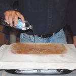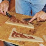 Applying composition ornament is a fairly simple process, although a little experience goes a long way. The equipment I use for heating is low-tech: a roasting pan on top of a two-burner hotplate. I made a wooden frame that is a little bigger than the roasting pan and stapled a piece of fabric over the frame. The type of cloth doesn’t matter; some folks use cheesecloth or even an old T-shirt.