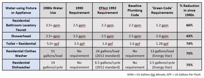 Table 1: Water consumption by water-using plumbing products and appliances – 1980s to 20213
