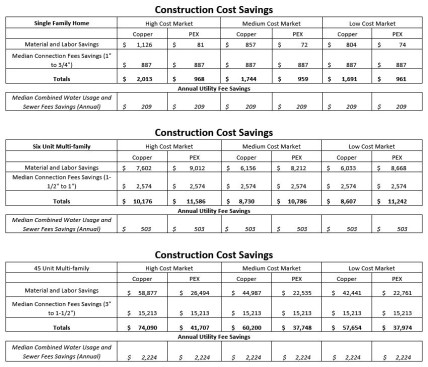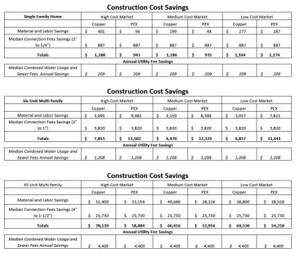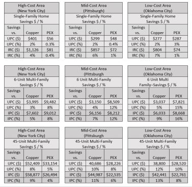 Construction and labor costs vary regionally in the United States, so three metro areas that represent high costs (New York City), mid-range costs (Pittsburgh) and low costs (Oklahoma City) were selected for the study. Material costs were calculated using trunk and branch copper systems and PEX manifold systems.