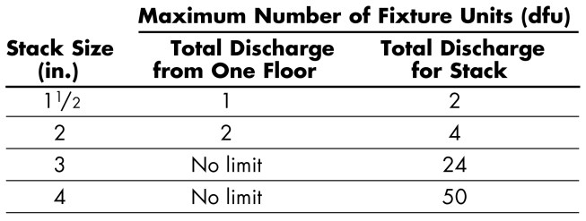 • A vertical waste stack can handle the discharge of all fixtures except toilets and urinals.