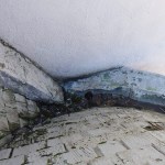 Sidewall intersection. The other awkward detail we had to correct was where the building abutted a larger commercial building. The intersection had been formed by a buildup of brick that had been poorly flashed to the roof and, over the years, it had been coated with stucco and roofing tar to try to seal the connection. We took the brickwork down below the level of the roof deck and sheathed over the brick so we could properly step flash and counterflash with a reglet let into the intersecting wall. At the base, the reglet tied in and was soldered to the copper gutters, effectively eliminating the trapped corner that had originally impeded drainage.