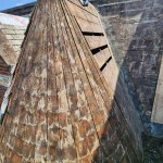 Last year, my company restored an unusual roof on a 19th-century building in Fowler, Ind. The original thick cedar roof shingles had been coated with countless layers of paint in a poor effort to increase their life span, and most of the flashings had deteriorated, leading to considerable rot in the sheathing and some of the framing beneath it. After setting up staging around the building and stripping the roof, we turned our attention to correcting some problematic details in the original design and repairing the rotted areas.