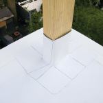 Because this was my first time with a new material, I didn’t try to hurry the job. Working with one helper, it took me about 10 hours to install, seal, and flash the membrane on each of the three decks, not counting the time to put down the underlayment. The total cost for materials came to about $2,500, with the flashing boots accounting for almost a third of that (we used 15 4×6 boots, which cost $45 apiece, and two larger custom-made ones for the corner column at $75 each). In all, the cost was pretty comparable to what it would have cost to do the same project with black rubber roofing. Although material costs were about 20% higher, labor costs were reduced because we didn’t have to spend time spreading adhesive or standing around and waiting for it to set up.