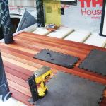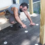 The posts themselves were later boxed in and capped with PVC trim, which prevents any water from soaking into the structure through the end grain of the posts. To further protect the TPO membrane where it’s in contact with the sleepers that support the deck boards, I placed an additional 3-inch-wide strip of material under each sleeper. These extra strips aren’t cemented or heat-sealed, but are held in place by the weight of the floating deck above.