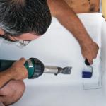 Instead, I used a hand-held heat gun designed for use in obstructed areas. This is a specialized commercial tool, and because it retails for about $700 I was glad to be able to borrow one from the roofing rep.