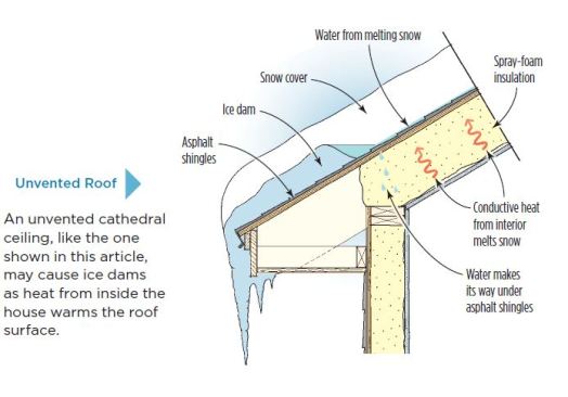 Ice dams are often viewed as a winter-time exterior problem to be solved with ice melting salts and heat tape. But such solutions risk damage to the roof, or even fire, and don’t address the cause of the problem.