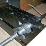 To attach the rods to the beam, we bored horizontal holes through the beam, inserted the rods through these holes, and then fastened them in place with nuts and large washers. At the center of the house, along the balcony, we installed custom-made 1-inch-thick steel H-brackets between the floor joists, and fastened the ends of the rods to these brackets. Some of the joists were twisted or cupped, so in order to get a solid connection we had to shim between the brackets and the joists with thin metal plates. Turnbuckles in the middle of the span would allow us to make final adjustments.