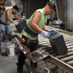 The block is cut to the desired width and lengths with a water-cooled diamond blade.