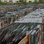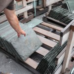 Forklifts are used to ferry orders awaiting delivery and the acres inventory around the slate yard. Pricing for a square roof slate ranges widely due to color selection and thicknesses. The least expensive slate is roughly $400 a square, while the most expensive goes for over $2,000 a square.