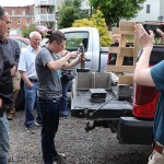 Shawn Camara of Camara Slate Products, Inc. (left, foreground) shows the public how to hand split slate during a “Slater Day” event at the Slate Valley Museum in June of 2023. Photo by Tim Healey