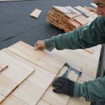 It’s well known that cedar shingles last longest when installed over a ventilating underlayment. The traditional way of doing this was to install them over horizontal strapping, but that’s rarely seen anymore. We recommend Cedar Breather as a good alternative, but many contractors and homeowners don’t want to add it to the roofing budget. So on most of our jobs, we cover the roof sheathing with 30-pound felt (rather than the 15-pound felt we use under asphalt shingles), and line all eaves, rakes, and valleys with Ice & Water Shield.