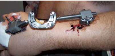 However, if I could live with a few extra scars and an odd structure called an “external fixator” attached to my arm, the doctor was willing to reassemble my wrist and set the bones right away.