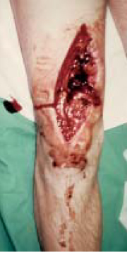 The wound required two surgeries β one to clean it up and another a couple of days later to stitch everything back together once it was clear there was no bone infection β plus a long period of recuperation.