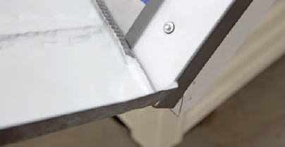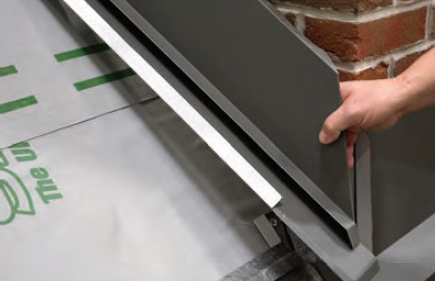 - Open the portion of the top lock on the panels that the backflash overlaps, and install the backflash, using a generous amount of sealant between the flashing and the panels.