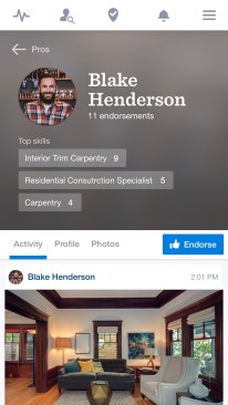 There is also an option to search for contractors by name or based on skill, as well as give or receive endorsements.