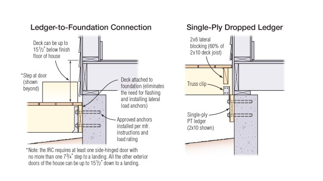 StructureDropping the Deck LedgerGlenn Mathewson explains how to frame a deck that is flush with the first floor system when the deck ledger is fastened to the foundation rather than the wall framing. 6 MIN READ
