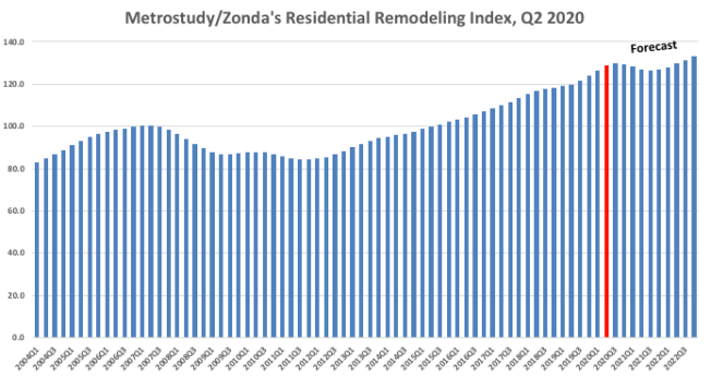Despite strong activity in the remodeling sector during the second quarter, Metrostudy/Zonda projects remodeling activity will see quarterly declines beginning in the fourth quarter.
